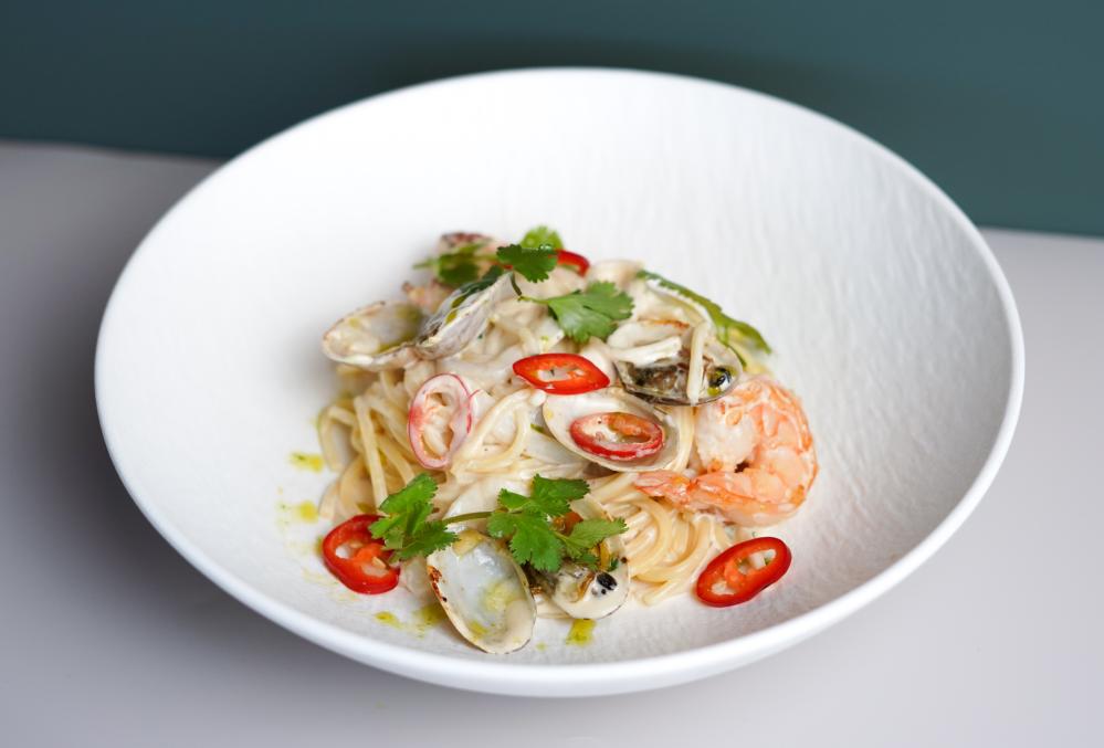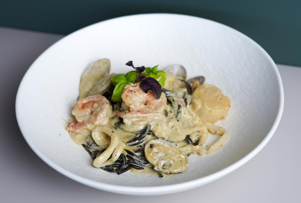 Паста с морепродуктами в соусе лемонграсс